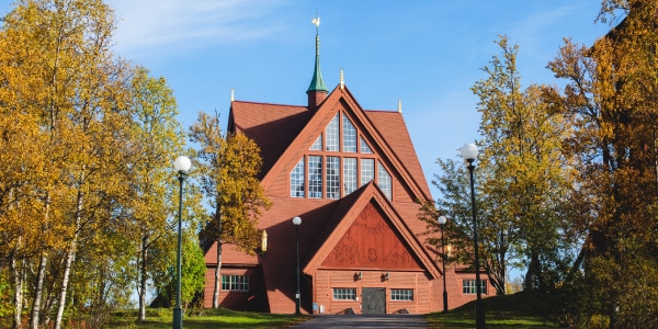 In Sweden, there is a town called Kiruna. In this town, there is a big red church. The church is very heavy and very old. People build it in 1912. It looks like an old house of the Sámi people.