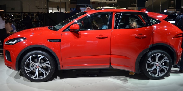 The car goes for 160 metres. Then the car jumps. It flies 15.37 metres. It rolls, too. The car is a Jaguar E-PACE.