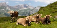 There cows are in pastures up in the Swiss Alps. There is a heat wave in Europe, and it affects even up in the mountains. The hot weather is not good for the cows.