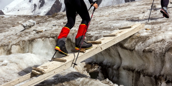 Difficult words: associate professor (a professor at a lower level), crevasse (a deep open crack in thick ice).