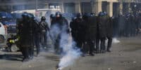 People celebrate who like Macron. People are very unhappy who vote for Le Pen. People protest in the cities of Paris and Lyon. Protesters attack police officers.