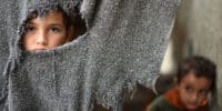 Amal’s husband is far away in the West Bank. He cannot come home because of the war. He never meets baby Mohamed. Amal says it is very scary. She holds her children close during bombs and tries to stay strong for them.
