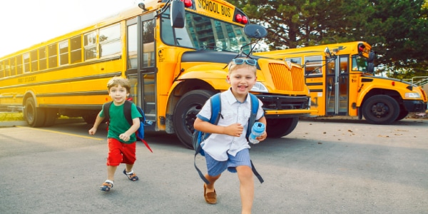 Over time, most school buses in the US became the same yellow color. In the past, many children walked or used horses to go to school. Later, red, white, and blue buses took children to support patriotism.