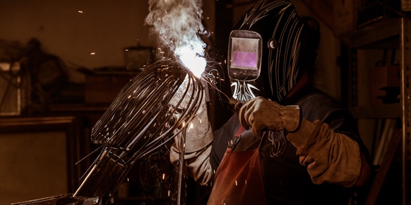 The artist builds it. The statue is six metres tall. It is a statue of a soldier. The artist makes the statue from scrap metal.