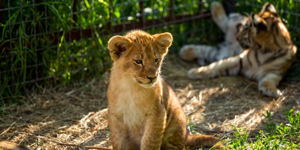 Jeanette and her dog Leon have raised tiger and lion cubs before. She warns that they are not suitable pets. When they grow up, they can be dangerous. Soon, the cubs will go back into a suitable place, but for now, they are still like puppies for their dog friend.