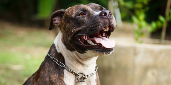 Margot, a pit bull and an American bulldog mix, was found abandoned in a Walmart parking lot.