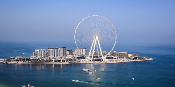 The wheel took more than six years to develop, and it opened with a lavish drone and firework show. Standing on the city’s Bluewaters Island, the structure needed to be drilled down into the ground to hold the weight of the whole structure.